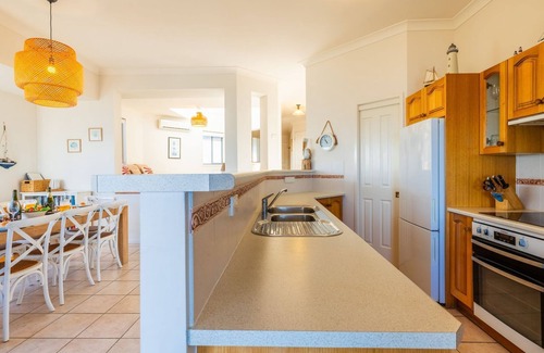 Sleeping up to 8 guests (maximum 6 adults), Oceanviews offers three bedrooms, two bathrooms, ducted air conditioning and a fully equipped kitchen with Nespresso machine, dishwasher, induction cooktop and family-sized fridge. The open-plan lounge and dining areas flow to a large deck with BBQ—ideal for alfresco meals, whale watching, dolphin-spotting and unforgettable sunsets.
