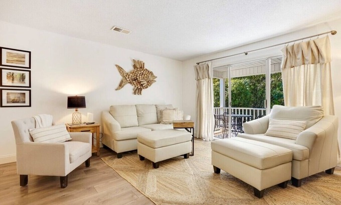 Island Life and Small-Town CharmTrade the stress of everyday life for the complete relaxation and gorgeous beaches when you chooseour beautiful condo on St Simons Island. Beautifully renovated and newly decorated, our condo offers guests private accommodations with on-site amenities including 2 community pools (one which is heated), tennis/pickle/basketball courts, clubhouse fitness center and children's playground.