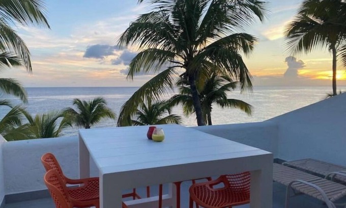 Located in the tranquil resort community of Cupecoy Beach Club, this 2-story oceanfront, 3 bedroom condominium offers stunning views of the Caribbean Sea and spectacular sunsets from the private balconies.