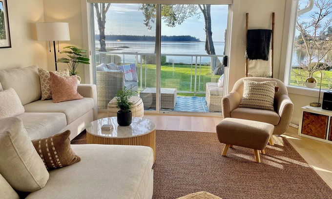 Welcome to the Seaside! A luxurious and peaceful retreat, featuring stunning ocean views and unforgettable sunsets. Relax in this newly renovated, modern, oceanfront suite immersed in the beauty of coastal Vancouver Island. Fully renovated with 2 king bedrooms 2 baths.