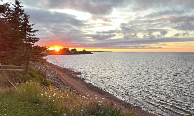 Nestled on Nova Scotia’s Northumberland Strait in Port Howe, our charming 2 bedroom, 1 bath cottage sits right on the shoreline—offering spectacular sunrise views and direct beach access. At high tide, dip into the warmest ocean waters north of Florida; at low tide, stroll across the sandbars exploring tidal pools and sea life.