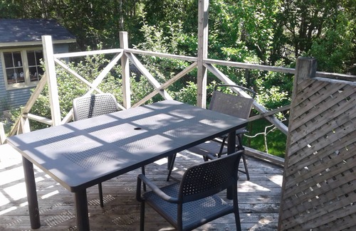 Fantastic Oasis on the water with your own deck. Area for launching kayaks, canoes and even for a chilly swim in the ocean. Close to the city, yet feels like the country on this narrow, winding street. Very close to Crystal Crescent beach and many hiking trails and other beaches very near by. Dingle park is a 5 minute drive away.
