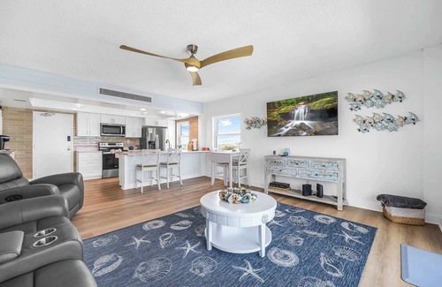 The open-concept living area is bright and airy, perfect for lounging with a book or streaming your favorite shows on the smart TV. Ocean-view dining offers a dreamy setting for every meal, and fast Wi-Fi makes remote work or planning your beach day a breeze.