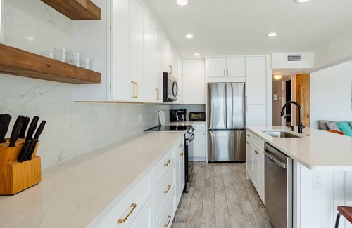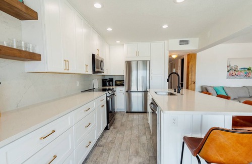 We have recently renovated the exterior - new decking, pavers, shower enclosure. We have also fully renovated the kitchen. The house is located in an upscale neighborhood with million dollar houses flanking each side. The inside has been completely overhauled. The owner has replaced all windows, sliding glass doors, the air conditioning unit, most appliances, and the flooring throughout. The downstairs main living area has a mounted flat screen TV with full cable, including a sports and entertainment package (i.e. millions of channels!). The house also has free WIFI internet. One bedroom has a king size Sleep Number bed. The guest room has two sets of new bunk beds. It comes fully equipped with towels, linens, dishes, and cutlery. Just bring your bathing suit and flip flops! The downstairs unit has a full laundry room with a brand new washer and dryer.