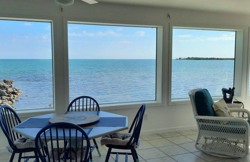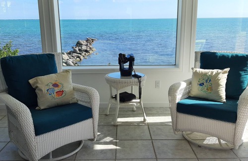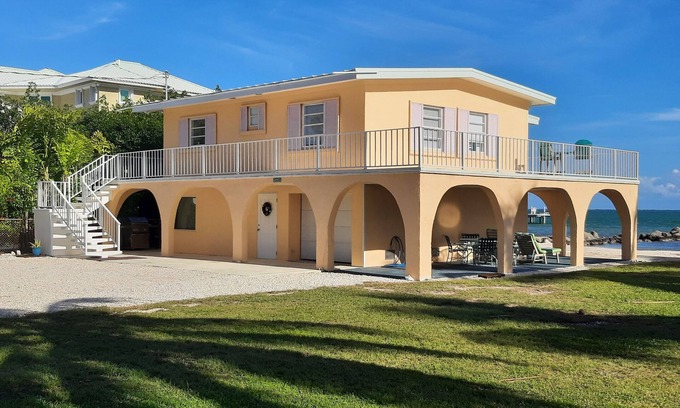 The Key-ver beach house is an oceanfront vacation rental in the world-famous Florida Keys on the southern end of Summerland Key, mile marker 25. The house is an open floor plan with panoramic Atlantic Ocean views and a large wrap-around deck. It includes the best of both worlds: an oceanfront private beach and protected canal dockage with instant access to open water. Enjoy sunrises, the glow of the southern sky at sunset, and the night sky. The Key-ver beach house offers you a home base for fishing, diving, and adventures by sea, quick trips to Key West for tours, shopping, or happy hour and a quiet place to kick back and enjoy island life with a spectacular view.
