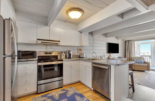 Welcome to this quiet and charming getaway on one of Delaware's most beautiful stretches of shoreline. This oceanfront condo is perfectly situated for those who love the beach, with direct access to the sand and incredible sunrise and sunset views from two large screened-in porches. Inside, the property features two comfortable bedrooms and one and a half bathrooms, sleeping up to seven guests. The oceanfront bedroom has a king-size bed, while the second bedroom offers a bunk bed with two twin beds as well as a full bed. For additional sleeping space, there's a queen-size sleeper sofa in the living area. In 2025, the condo was updated with brand-new carpeting and all new mattresses to make your stay even more comfortable. The kitchen is fully equipped for all your cooking needs, with a dishwasher, blender, Keurig, and a regular coffee maker. It's well stocked with cookware, dishes, and utensils, making it easy to enjoy meals together after a day at the beach. High-speed internet is available throughout the unit, ideal for streaming on any of the three flat-screen TVs, which offer live streaming but no cable service. For added convenience, the condo includes a washer and dryer, an outdoor shower, and plenty of parking. Step outside and you'll find yourself right on the guarded beach, with a chair and umbrella rental station located directly in front of the condo. From this ideal location, it's an easy walk or bike ride into both Rehoboth Beach and Dewey Beach. The Chesapeake Street trolley stop is nearby, making it simple to get around without a car. You'll also be close to bay activities, local shops, and fantastic restaurants that stay open all year round, making spring and fall especially beautiful times to visit. The property has a two-night minimum stay in the spring and fall, and Saturday-to-Saturday rentals during the peak summer season. Guests should bring their own linens, and please note that candles may not be burned inside the building. Whether you're here for a family vacation or a quiet coastal retreat, this oceanfront condo offers the perfect blend of comfort, location, and charm.