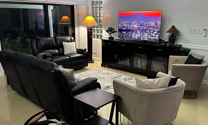 Inside, modernity meets convenience with a plethora of features: smart TVs with streaming services, a karaoke machine for lively gatherings, and high-speed fiber internet to stay connected. Each room boasts individual climate control, complemented by ceiling fans for ultimate comfort.