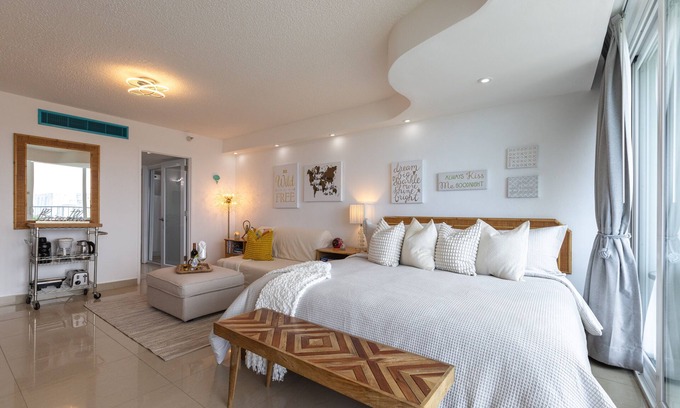 With this million dollar view, what are you waiting for? Book now! Less than a 5 min. drive from SJU airport & steps to the beach, this fully equipped 10th Floor studio is where you want to spend your PR sunsets. One free parking spot in the garage. Self check-in ANYTIME after 3pm. Access to paid laundry machines in basement. Free storage of luggage before check-in and after check-out. 24/7 supermarket 10 min. walk. Pool permanently closed.