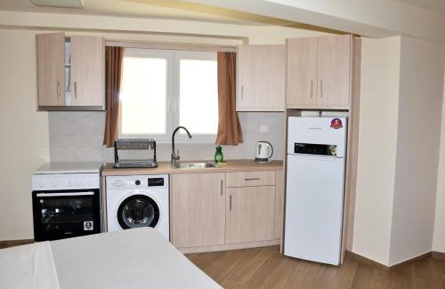 Oceanides Rooms provides beachfront accommodations in Lefkandi Chalkidas. This recently renovated apartment is located 2.6 miles from Sport Center of Agios Nikolaos and 15 miles from T.E.I. Chalkidas. Guests can enjoy inner courtyard views. Featuring free Wifi, the units have a washing machine and a flat-screen TV. Every room includes a kettle and a private bathroom with a a bath or shower and a hair dryer, while selected rooms are equipped with a fully equipped kitchen. Terra Vibe Park is 30 miles from the apartment. The nearest airport is Eleftherios Venizelos, 60 miles from Oceanides Rooms, and the property offers a paid airport shuttle service.