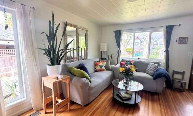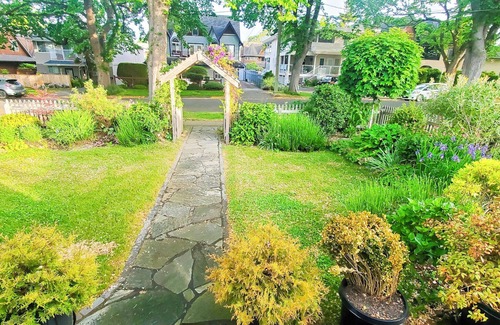Come and stay in quaint James Bay. Only steps to Dallas Road and the ocean. Walk the Breakwater, enjoy dining with the sunset. Short walk to downtown and Beacon Hill Park. Quiet neighbourhood, peaceful private back yard. Large sunny office space to work from.
