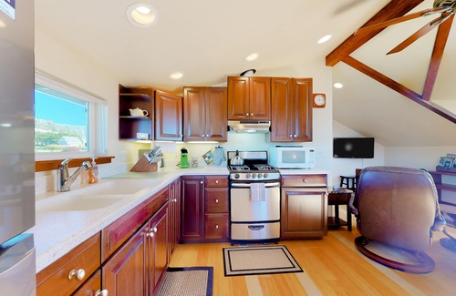 You'll find the kitchen fully equipped with everything you need for meals, including a breakfast bar for seating. Whip up a clam chowder while a winter storm makes the waves crash outside. There is no dishwasher but you can always let the pots and pans soak while you take in the views or watch a movie.