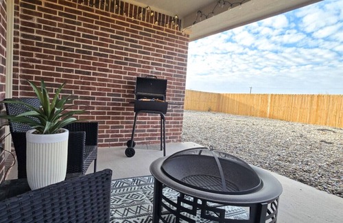 About this space Discover this beautifully furnished 3-bedroom, 2-bath home in Odessa, TX, ideal for families, students, traveling medical professionals, and oil & gas field workers. Enjoy a fully stocked kitchen, cozy living space, and modern amenities perfect for extended stays. Conveniently located near hospitals, universities, and major work hubs, this home offers comfort and convenience. Early check-in and late checkout options are available for a fee ranging from $25-$35. The space This spacious 3-bedroom, 2-bath home is perfect for families, traveling professionals, or groups. The master suite features a comfortable queen bed and a futon for extra sleeping space. Bedroom 2 includes bunk beds with an additional twin, and Bedroom 3 offers a cozy queen bed. The living room has a queen sofa bed for added flexibility. Enjoy the fully stocked kitchen, Wi-Fi, and smart TVs throughout the home. Step outside to a cozy backyard with comfortable furniture, a BBQ grill, and a firepit, perfect for relaxing evenings. Please note, a rental agreement may be required before your stay. Guest access Guests will have full access to the home through a smart lock system. Prior to check-in, a unique code will be provided, allowing easy and secure entry without the need for keys. The code is valid for the duration of your stay and will automatically expire after checkout. Detailed instructions for using the smart lock will be sent in the check-in guide to ensure a smooth arrival. Other things to note *This property is professionally managed and maintained to ensure a 5-star experience for every guest. *Early check-in and late checkout are available upon request for an additional fee of $25-$35, subject to availability. *A fully stocked kitchen is provided, including cookware, dishes, and basic spices for your convenience. *The backyard is designed for relaxation, featuring cozy seating, a BBQ grill, and a firepit—perfect for unwinding after a long day. *A rental agreement may be required before check-in, which will be sent via the platform for electronic signature. *Please note that while the host is not available on-site, prompt support is provided through platform messaging for any questions or issues during your stay.