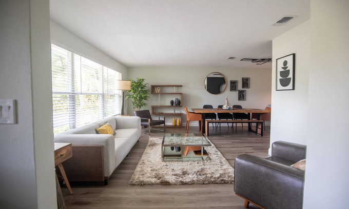 Bring the whole family with you to this peaceful retreat in Ormond Beach, Florida! 3 bedroom, 2 bath home, recently renovated, situated 10 minutes from the beach and nearby restaurants and bars and 5 minutes from Tomaka state park where you can enjoy Kayaking and hiking. PLEASE NOTE: The garage is not available for use.