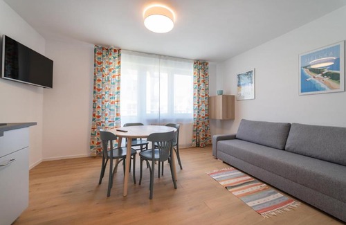 Ogrodowa 45 is a recently renovated apartment in Jastarnia near Jastarnia Beach. This apartment features free private parking, private check-in and check-out, and free Wifi. On-site staff can arrange a shuttle service. The units come with parquet floors and feature a fully equipped kitchenette with a fridge, a flat-screen TV, and a private bathroom with shower and a hair dryer. A stovetop and kitchenware are also offered, as well as a coffee machine and a kettle. At the apartment complex, units have bed linen and towels. Guests at the apartment will be able to enjoy activities in and around Jastarnia, like cycling. Guests can relax in the garden at the property. Gdańsk Lech Wałęsa Airport is 45 miles from the property, and the property offers a paid airport shuttle service.