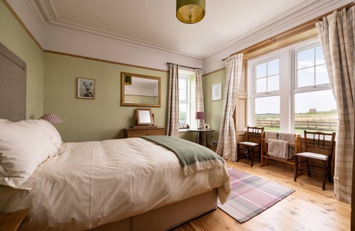 Old Duffus Farmhouse, sleeping 8, is a traditional stone farmhouse on family run Duffus Estate and is just 5 miles from Elgin. This spacious yet homely property is ideal for families or larger groups. It is surrounded by fields with unrivalled views directly across to the ruins of Duffus Castle - an ideal place to retreat and relax. Just imagine a stroll through castle ruins whilst the sun sets across fields of golden barley or a sunny evening bbq or fire pit with a killer castle view! 3 of the 4 bedrooms and the living room all have unbeatable, south facing views of Duffus Castle which makes this a truly unique place to stay.