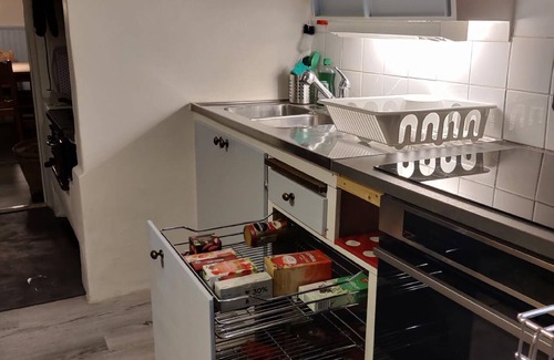 Kitchen: Ceran stove; Coffee machine; Electric stove; Freezer; Freezer; Fridge; Oven; Toaster; Water boiler