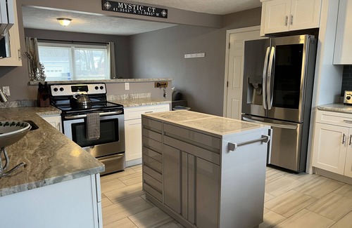 The Breezy Knoll House is a cozy ranch home in Old Mystic CT. This beautiful home is located in a quiet and peaceful residential neighborhood 2 miles from downtown. There is so much to explore in Mystic including the Seaport, aquarium, downtown Mystic know for its shops and dining, and so much more! It’s a short 15 minute drive to local beaches or 25 minutes to Misquamicut.