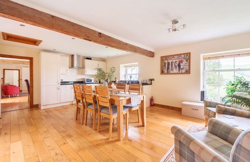 Amenities: Eco-friendly central heating from biomass boiler with woodburners. Two double electric ovens and hobs, microwaves, fridge/freezers, washing machines, dishwashers, 8 x TVs with Freeview, DVD, WiFi, selection of books and games. Fuel, power and fuel for woodburners inc. in rent. Bed linen and towels inc. in rent. Travel cots, highchairs and stairgates on request. Off road parking for 6 cars. Lockable bike storage. Private lawned garden with patio, furniture, BBQ and hot tub. Indoor heated swimming pool (40x20) Exclusive slots to be booked directly with the owner, shared with Old Rectory House 930301. Sorry, no pets or smoking. Shop and pub 3 miles. Sofa bed sleeping 2. PLEASE NOTE, Old Rectory Cottages sleeps 7 people per self-contained house or can be used as one larger holiday let sleeping up to 14. House 1: 1 x King, 1 x Double, 1 x twin, 1 x ensuite bathroom and 1 x family bathroom, sitting room, kitchen/diner plus games room. House 2: 1 x King, 1 x Double, 1 x (zip & link) twin OR double, 1 x ensuite bathroom and 1 x family bathroom, sitting room, kitchen/diner. Electric Car Charging is not permitted at the property