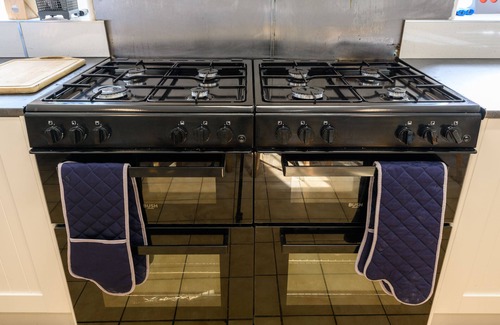 * Kitchen: 2 fridges, 2 hobs, 2 ovens, 2 kettles, a freezer, 2 microwaves, and a dishwasher (tablets provided).