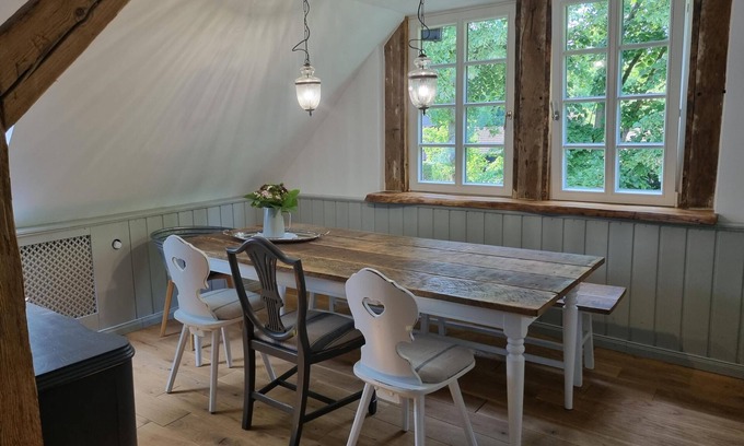 Old school Jarnsen Oberstübchen with balcony is located in Lachendorf. Old school Jarnsen Oberstübchen with balcony provides accommodation, featuring Pet Friendly, Security/Safety, Bedding/Linens, among other amenities. This Apartment features Pet Friendly, Security/Safety, Bedding/Linens, to make your stay a comfortable one.