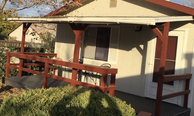 1 Queen Bedroom, 1 Bathroom will full size tub and shower, with a Queen sofa sleeper in the living room on a very quite street. Your private home 2 blocks from Main Street in Old Town Cottonwood with a private driveway for 2 vehicles. A quick 5 minute walk to Historic Main Street Old Town where you’ll find many restaurants, shops and 8 or so wine tasting rooms of our growing area wineries! Enjoy a bottle of wine or morning coffee on the large front porch!