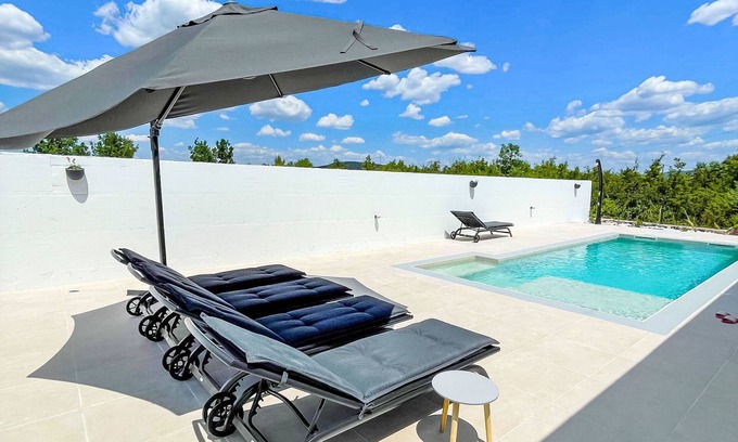 Bila Vlaka 18 km from Pirovac: Single-family house "Olivarum". 21 km from the centre of Tisno, 21 km from the centre of Vodice, 38 km from the centre of Biograd na Moru, in a sunny position, 18 km from the sea. Private: property 1'150 m2 (fenced), lawn 100 m2, swimming pool (8 x 3 m, depth 150 cm, seasonal availability: 15.May. - 15.Oct.) with internal staircase. WC in the pool area, outdoor shower, terrace (20 m2), garden furniture, barbecue, children's playground. In the house: internet access, washing machine. Parking (for 2 cars) at the house on the premises. Shop 6 km, restaurant 6 km, bus stop 6 km, pebble beach 18 km. Marina 18 km. Nearby attractions: NP Krka 30 km. Well-known lakes can easily be reached: Vransko jezero 25 km.