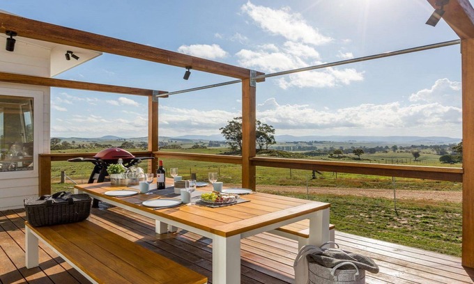 On A Hill is a modern country homestead set on 22 acres amidst sheep and cattle grazing country near the heritage-listed town of Braidwood in the Southern Tablelands of NSW. It is a sustainable holiday home built in 2016 entirely off the grid and without compromise to quality, luxury, and aesthetics.