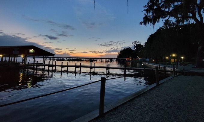 Everything from the Salt Springs and Silver Springs for the Manatee To the Bald Eagles nesting on site or across the river, Gated community with Pool, Marina Dock for your boat tor fish off the pier, watch the sunrise or sunset both from this vantage point across the water. On site laundry facilities and bathrooms with showers. Walk next door for a full restaurant from 6am till midnight service with bar and music, for the early bird to the night owl.