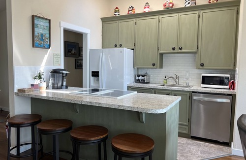 A second full bathroom features a nautical theme with a tub/shower combo, new vanity and tile floor. Both bathrooms have new ADA chair height toilets for your convenience.