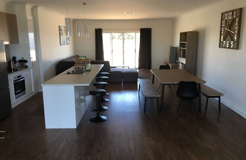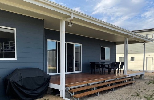 This modern new 4 bedroom holiday home featuring a large front and rear timber deck is a less than a 5 minute walk to the beach, general store and local tavern. With a large open plan living area and modern decor throughout and a fully equipped kitchen it’s the perfect place to spend a family weekend away or hang out with friends.