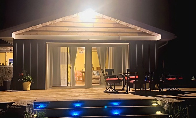 The accommodations offers a sunlit filled living space with 2 bedrooms, open concept full sized kitchen with a massive dining table. The deck and front yard fire pit afford a view of the "Key West like" sunsets or "dark night" atmosphere for star gazing. So please come for the ice cream but stay for the sunsets and the Big Dipper!