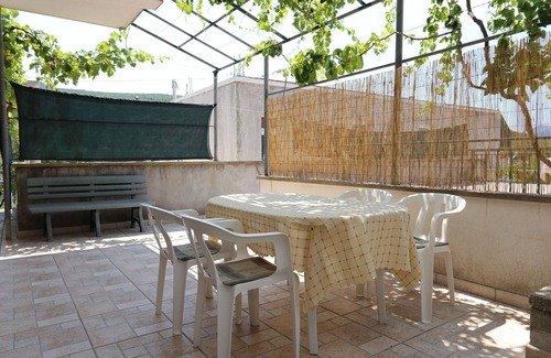 Apartment can accommodate 5 guests. Beds are situated in 1 sleeping rooms, but also in the living room, within 40m2. Guests can use a private terrace to enjoy the warm summer evenings. The apartment offers the sea view. Food can be prepared using barbecue which is shared with other guests too. Other guests or hosts pass through the terrace of the booked accommodation unit.