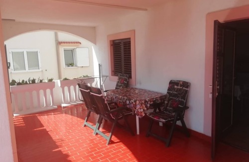 Apartment can accommodate 4 guests. Beds are situated in 1 sleeping rooms, but also in the dining room, within 28m2. Guests can use a private terrace to enjoy the warm summer evenings. The apartment offers the sea view. Food can be prepared using barbecue which is shared with other guests too. This accommodation unit welcomes pets at no additional costs.