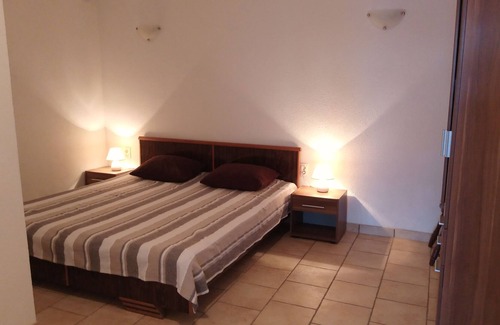 Apartment can accommodate 4 guests. Beds are situated in 1 sleeping rooms, but also in the living room, within 48m2. Food can be prepared using barbecue which is shared with other guests too. There is no balcony or terrace in the reserved accommodation unit.
