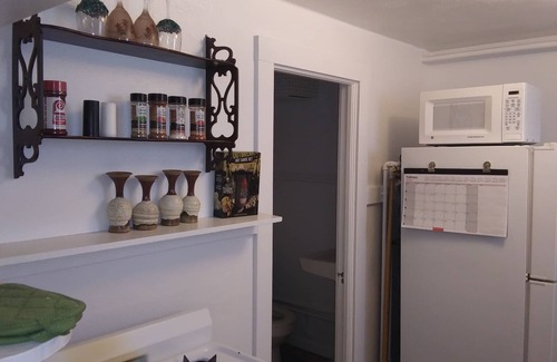 This is the basement apartment of a One hundred year old duplex with great lighting. It's private and well decorated with many amenities and one flight of stairs. The property owner is available by phone, or just a short drive away with a key code entry. The property has free wifi and a large, well maintained yard for outdoor entertaining and plenty of parking. It's just a short walk to food and entertainment.