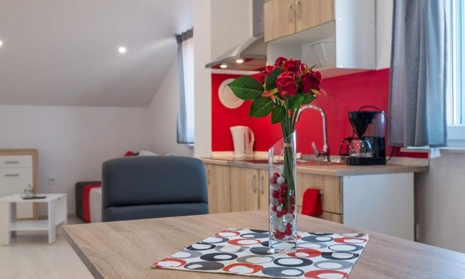 Apartment can accommodate 4 guests. Beds are situated in 1 sleeping rooms, but also in the living room, within 44m2. This accommodation unit welcomes pets at an additional charge. There is no balcony or terrace in the reserved accommodation unit.