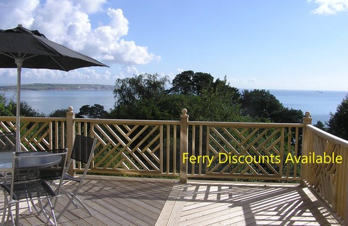 The accommodation: Entry phone system. Communal hallway leads to front door of apartment 5. The private entrance hallway leads to: Open plan living room, dining room & kitchen - a lovely room with spectacular views over Shanklin & Sandown Bay and the English channel, France can be seen on a clear day. Living area with chaise sofabed, dining table and chairs. Linen not provided for sofabed. The living room has solid hardwood oak floor with French doors to private decked terrace area. Kitchen area well fitted with a good range of floor and wall mounted units and appliances, tiled floor. Appliances include; Fridge/Freezer, Microwave, Gas cooker, Electric Oven, Dish Washer, Washing Machine. Kettle etc. Double bedroom with king sized bed, ample storage space providing views to Shanklin & Sandown Bay and the English channel. Bedside tables with lamps and clock. Drawers with table mirror and 3 door wardrobe and one door with a mirror. Hair Dryer, Iron, Ironing Board. Bathroom fully tiled with suite comprising bath with shower over, hand held shower, WC, WHB, heated towel rail. Outside - Private decked area with table & chairs. There are also delightful communal landscaped woodland grounds with garden furniture providing a restful haven for guests.