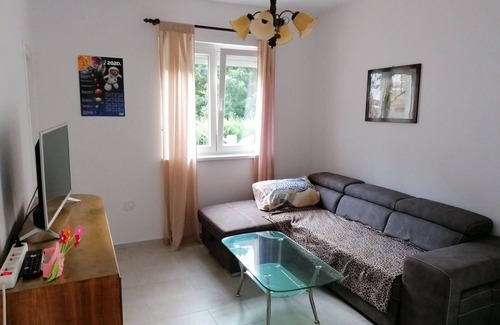 Apartment can accommodate 4 guests. Beds are situated in 1 sleeping rooms, but also in the living room, within 36m2. Guests can use a private terrace to enjoy the warm summer evenings. Food can be prepared using barbecue which is shared with other guests too. This accommodation unit welcomes pets at an additional charge.
