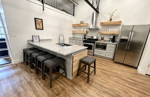 Inside the Inn there are four separate condos each approximately 1200 sq ft. and includes everything you'll need for your stay except the food. Full Kitchen, 60" TV's, plenty of comfort for your whole crew. All units are equipped with roll out sofa beds, WiFi, A/c and heat, big screen TVs, full kitchen setup for cooking, linens, towels, bedding, pillows, laundry pods and dryer sheets as well as shower essentials.