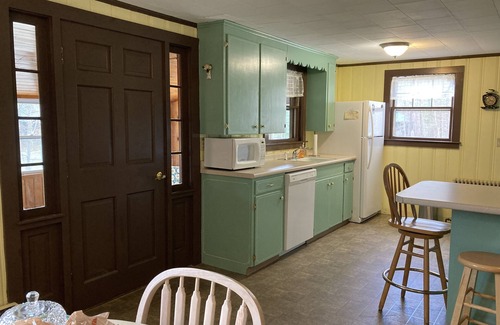 Lake view house has two bedrooms, 1 1/2 baths, sleeps 7(including rollaway cot), fully equipped kitchen, dishwasher, washer and dryer, 3 season porch.