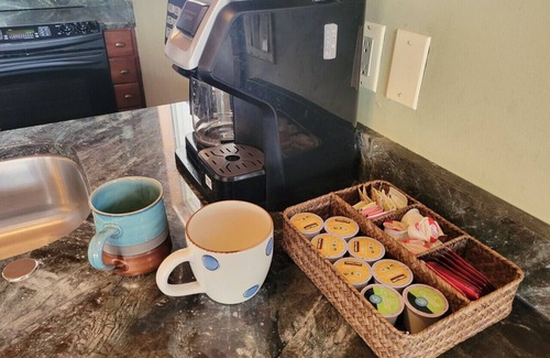 The Treehouse sleeps 8+ comfortably and offers a full kitchen with complimentary coffee and tea, two full bathrooms, large, comfy bedrooms, and a spacious rec room with a pool table and video games Wi-Fi, cable TV, in-house laundry facilities, and a pack n play type crib are also included.