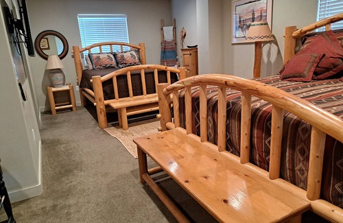 Additional Sleeping for additional guests in the downstairs Great Room on floor or cots. Cots ARE NOT provided.