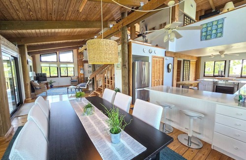 AMENITIES: Smart TV's, streaming only, DVD player and library, high speed Wi-Fi, hardwood floors, open design concept with Shoji doors, stainless appliances, well stocked kitchen, washer/dryer, sundecks, covered parking under house, enclosed hot/cold outdoor shower, park style grill, picnic table, path to beach access.