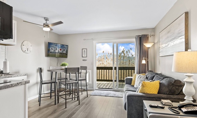 Welcome to Assateague Inn 104 - Newly Renovated and absolutely adorable. With New Flooring and Updated Furnishings, it’s a wonderful beach getaway! Decked out in cool Coastal Grays and Crisp Whites, it’s serene and peaceful. Perfect for couples or a small family, you can have that beach getaway you’ve been longing for - all without breaking the bank!