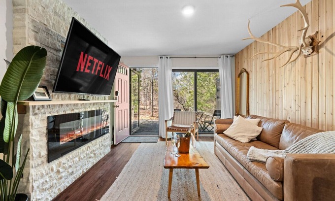 The open-concept layout includes a living room, dining area, and kitchen that’s both stylish and comfortable. We’ve stocked it with all the cookware, utensils, and spices you need. TVs in the living room and bedroom come equipped with Roku and access to Netflix, Hulu, Pandora, and more.