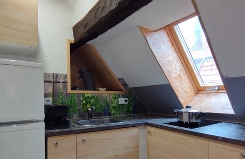 Welcome to our charming, newly renovated attic apartment in a historic half-timbered house in the centre of Alsfeld. The light and airy apartment is ideal for couples or singles who want to experience the charm of a traditional half-timbered house without sacrificing modern comforts.