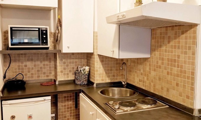 The kitchenette is fully equipped, ideal for preparing meals independently and feeling immediately at home.