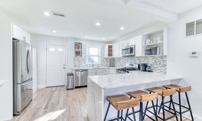 Orange Door Abode - Modern Design has 3 Bedrooms , 2 Bathrooms, and max occupancy of 8 people. The minimum rental for this property is 1 nights, but this can change depending on the season you plan on staying. Previous guests have given good rated it, and VRBO labeled it a top-rated House because of the excellent services rendered by the owner or manager of this House, and has consistently provided great experiences for their guests. Most families or guests that use it recommend it to their friends and some of them are repeat guests. House has a friendly neighborhood, and the Anacostia has interesting places to visit. If you want to learn more about the House in Anacostia, such as places to visit and things to do nearby, you can check below to learn more.