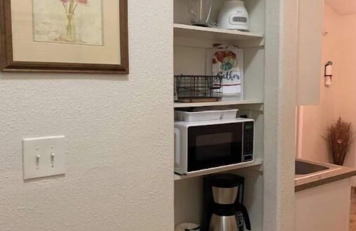 2 cozy bedrooms: (1) full size and (1) twin bed with linens . Living Room sofa sleeper can convert into full size bed. Kitchen has a full sized stove with oven and full size refrigerator. 1 bathroom with walk-in tiled shower. Dining area provided with 3 stools.