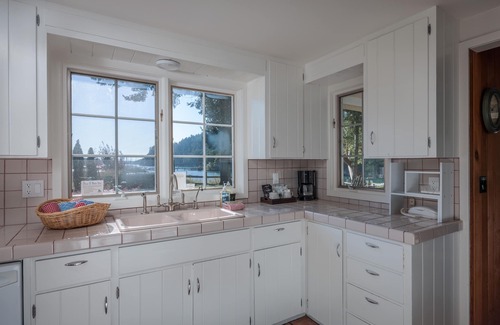 Marina View is a spacious one-bedroom guest house, with king bed, a fully equipped kitchen and large living area with vaulted ceiling. Both the living area and dining nook offer south and west views of the water. There is also a twin bed in the living room for an additional guest.